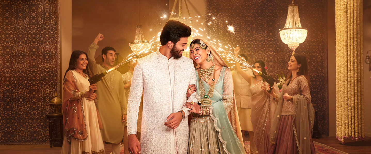 In her eyes, the glow of a thousand dreams. In his smile, a promise that needs no words. This is the epitome of love, shining bright. In this moment, the brideโs joy outshines even the grandeur of the wedding. And it is this happiness that inspires our jewellery.